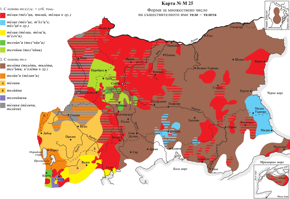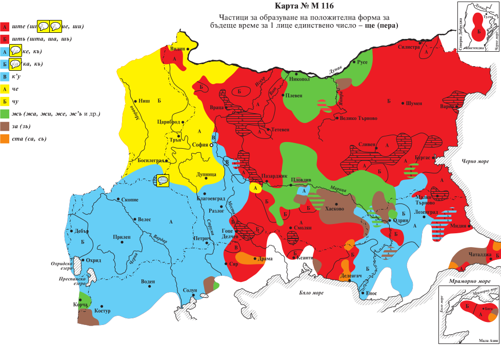Не по-малък интерес в атласа представляват картите, представящи форми и явления, които не се срещат или са имали ограничено разпространение в старобългарски, защото в този период от развоя на българския език са били все още в своя зародиш. Най-яркият пример в това отношение е картата, която отразява типовете системи за членуване – Тричленна система с елементи -т, -н, -с: брегот, брегон, брегос и др.; тричленна система с елементи -т, -н, -в: брегот, брегон, брегов и др.; едночленна система със съгласна -т: брегът, брегот и др.; едночленна система без съгласна: брега, брего и др. Подобни са и картите, които показват диалектните особености на частиците за образуване на формите за бъдеще време на глаголите: ште пера, шта пера, ке пера, че пера, чу пера, жа пера, за пера, ста пера и др.