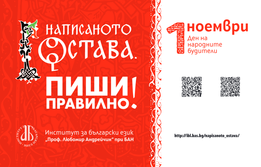 На 1 ноември 2024 година Институтът за български език „Проф. Любомир Андрейчин“ към Българската академия на науките Ви честити празника