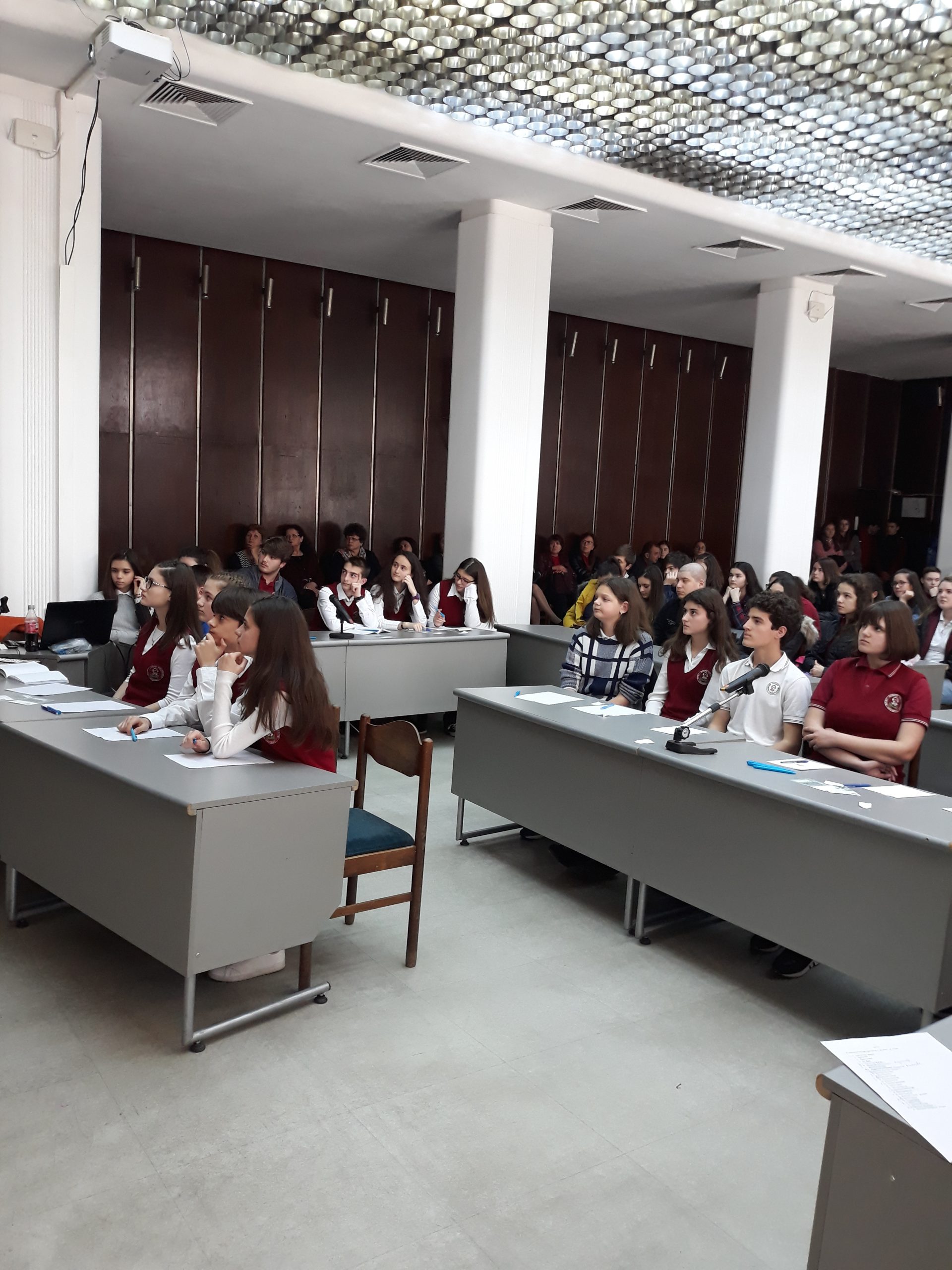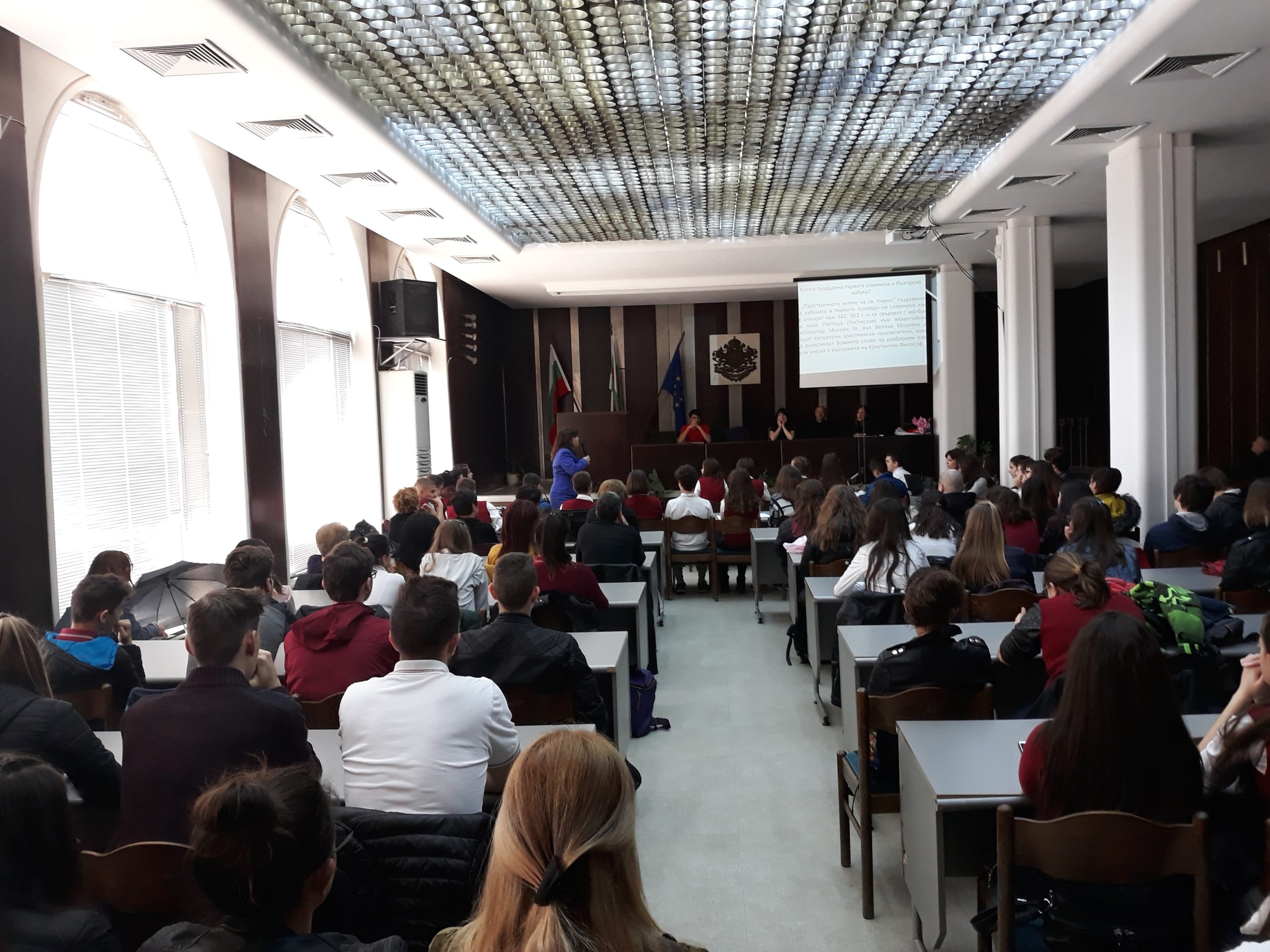 After an invitation by the Headteacher Mariyana Mileva and the Bulgarian language teachers Veselina Toneva and Veselina Simeonova, on 11th April 2019 researchers from the Institute for Bulgarian Language visited the Natural Sciences and Mathematics High School Dobri Chintulov in Sliven. The event titled “Following the Old Bulgarian Script” took place in the Council of Sliven, with more than 150 people in attendance.