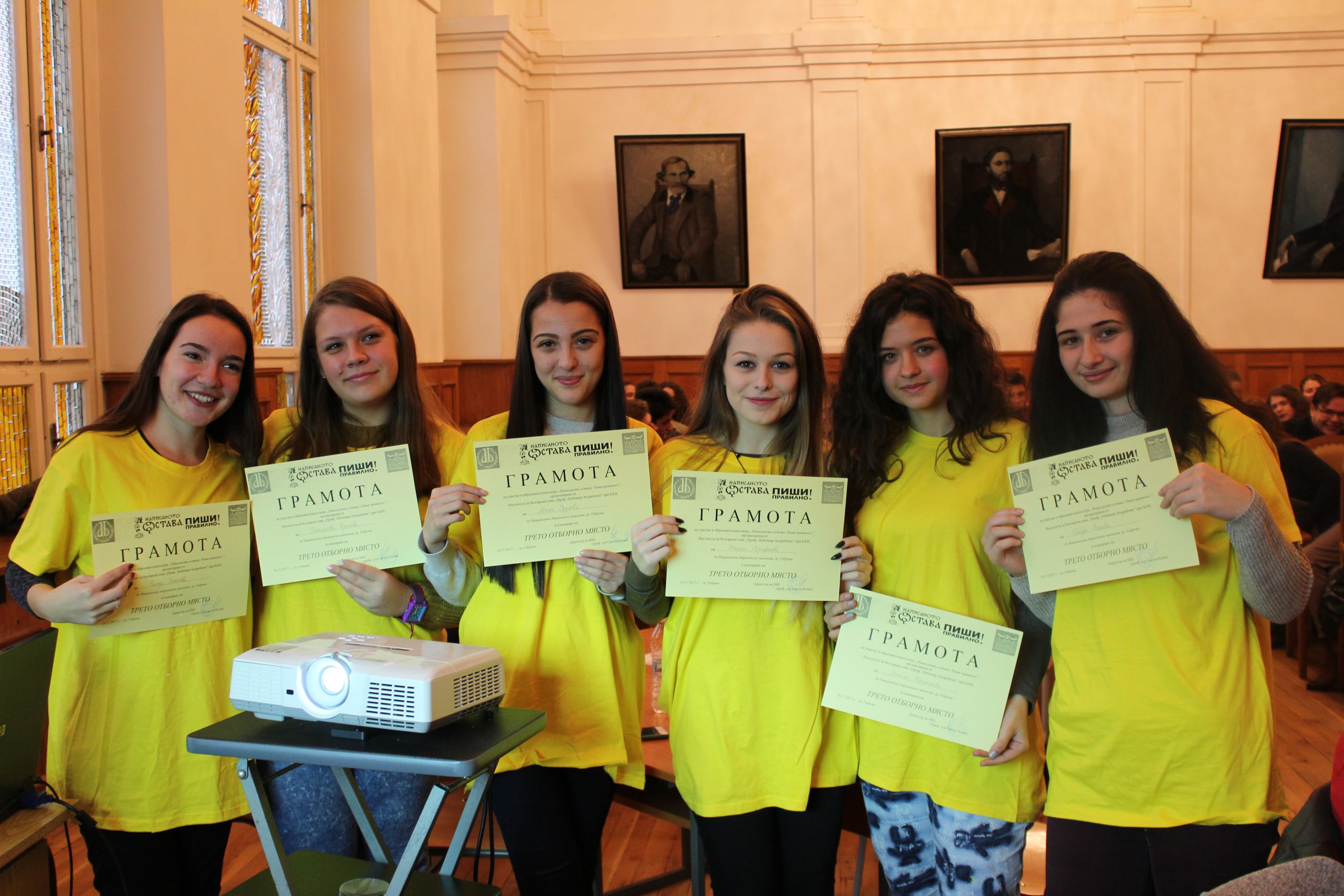 On 16th November 2017 the Institute for Bulgarian Language visited the Aprilov High School in the town of Gabrovo, where there was a Bulgarian language educational game “Let’s Investigate Together!”. Students from 11th and 12th year took part and answered questions in the field of Bulgarian lexicology and grammar. They demonstrated excellent knowledge and competitive spirit. The questions were compiled by young researchers from the Institute for Bulgarian Language.