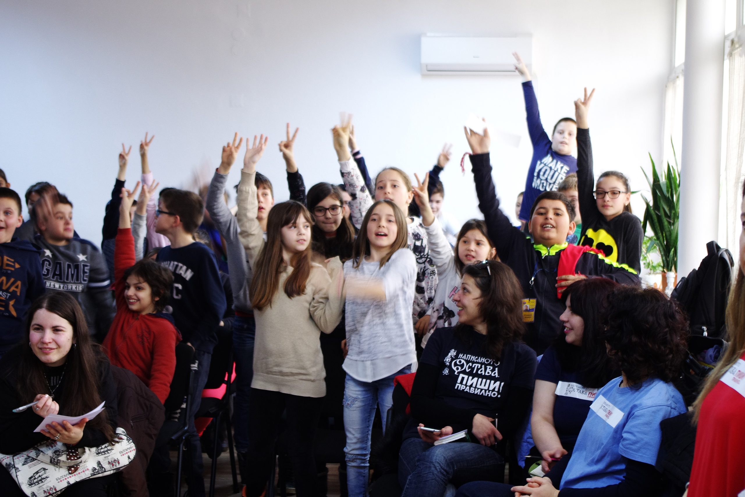 On 6th March 2018 at the National High School “Sofia” researchers from the Institute for Bulgarian Language presented another fun quiz as part of the campaign “The Written remains. Write correctly!”. Its purpose was to promote the interest in studying our native language. Three teams of 4th grade pupils took part in the quiz and showed very good practical knowledge of Bulgarian grammar and lexicology. There was great enthusiasm in the games with the audience.