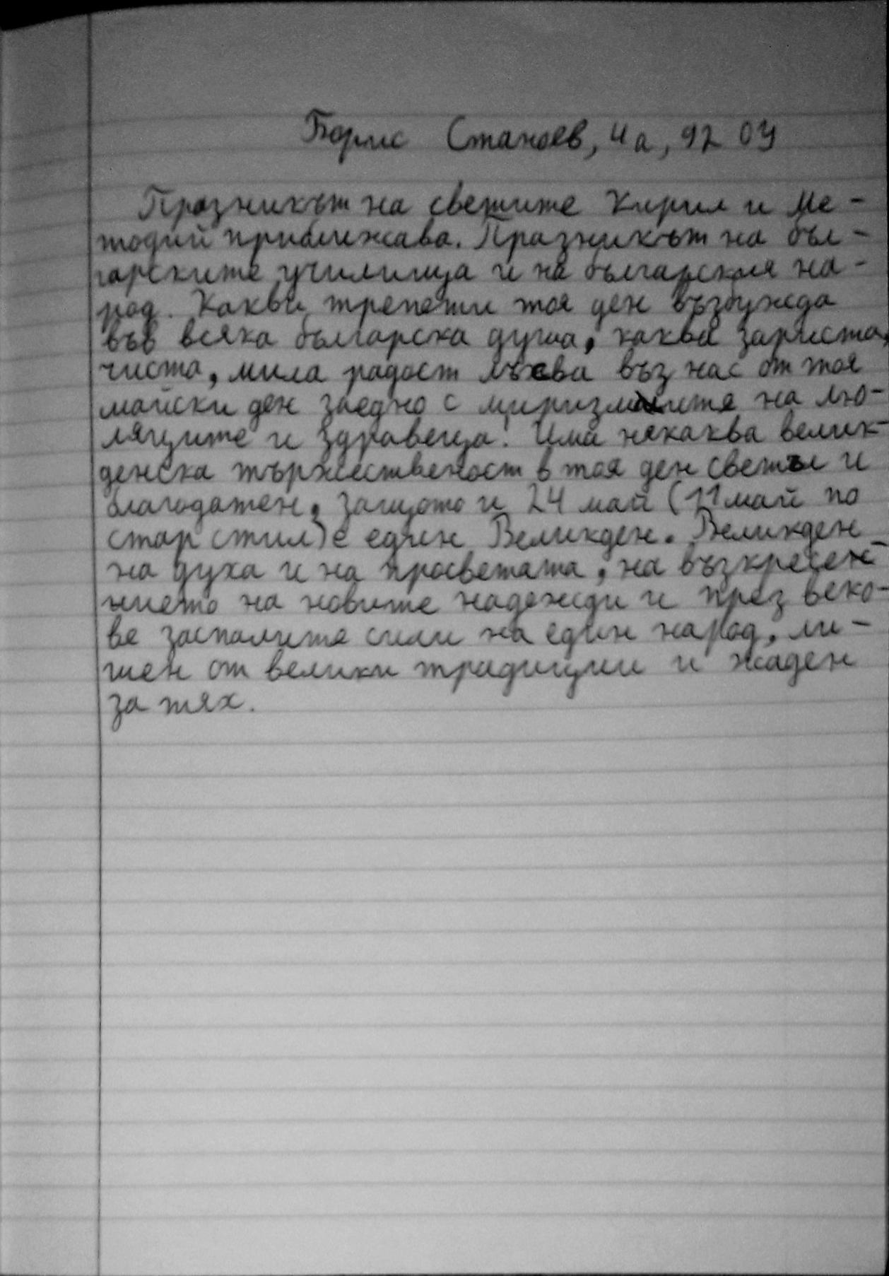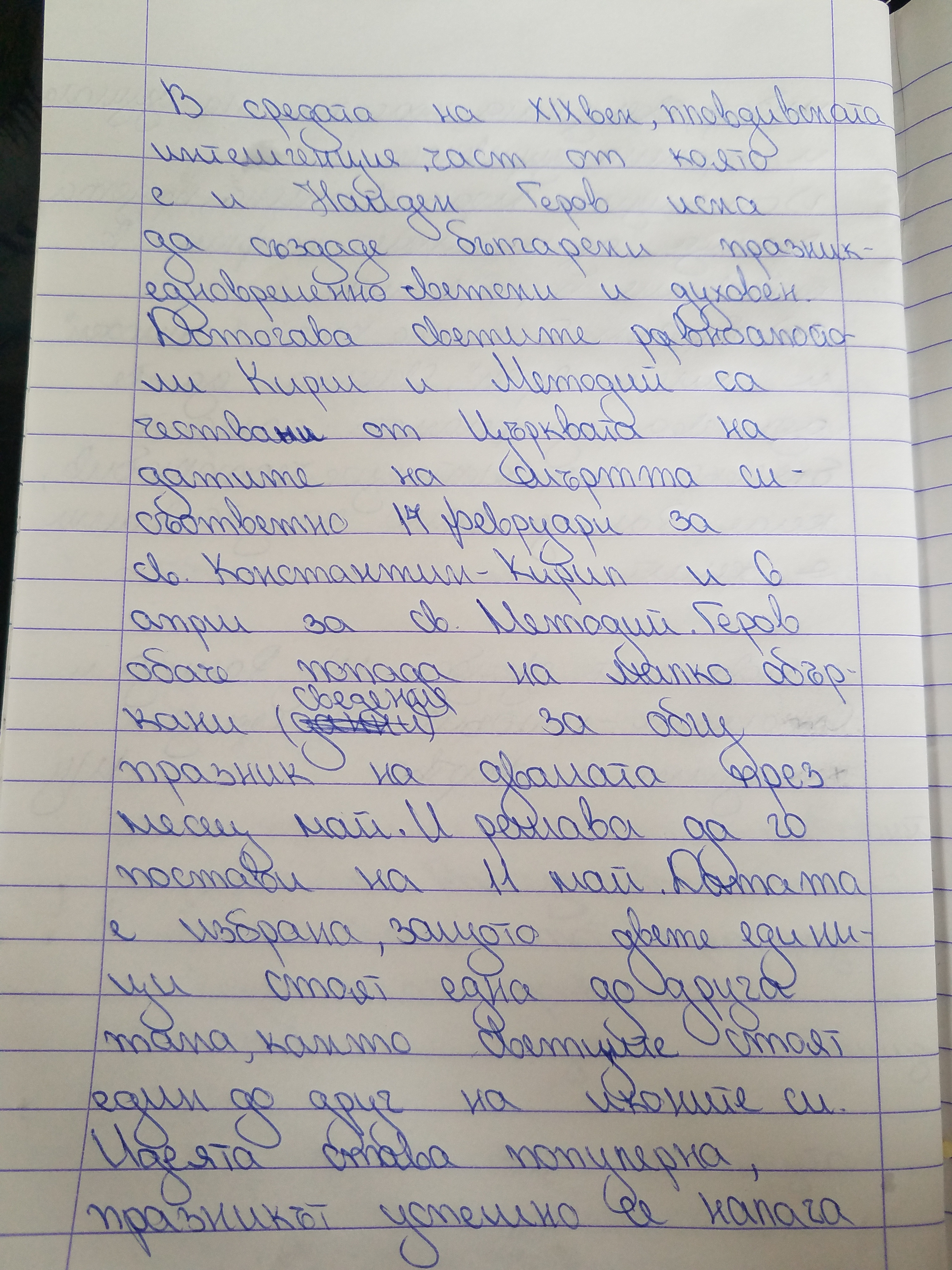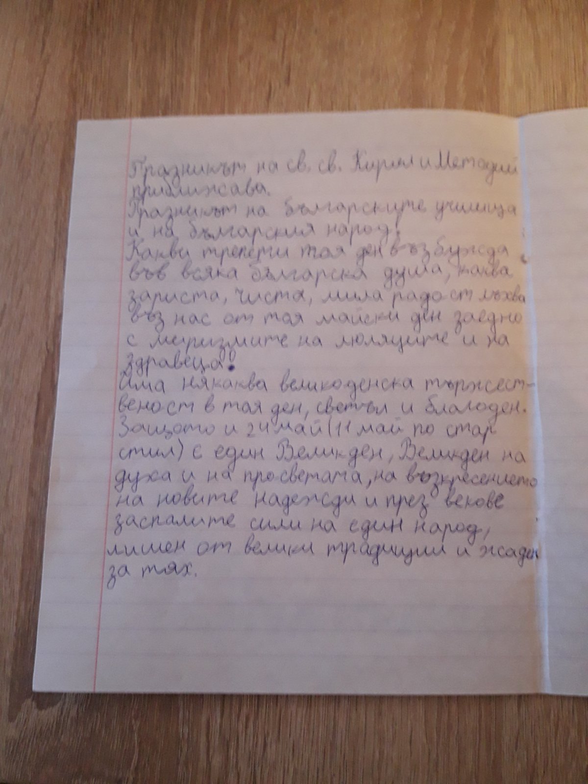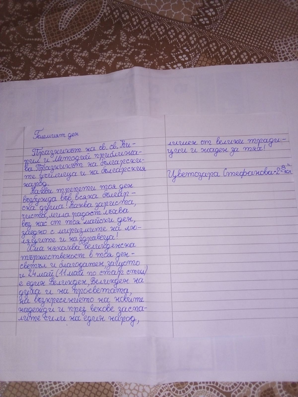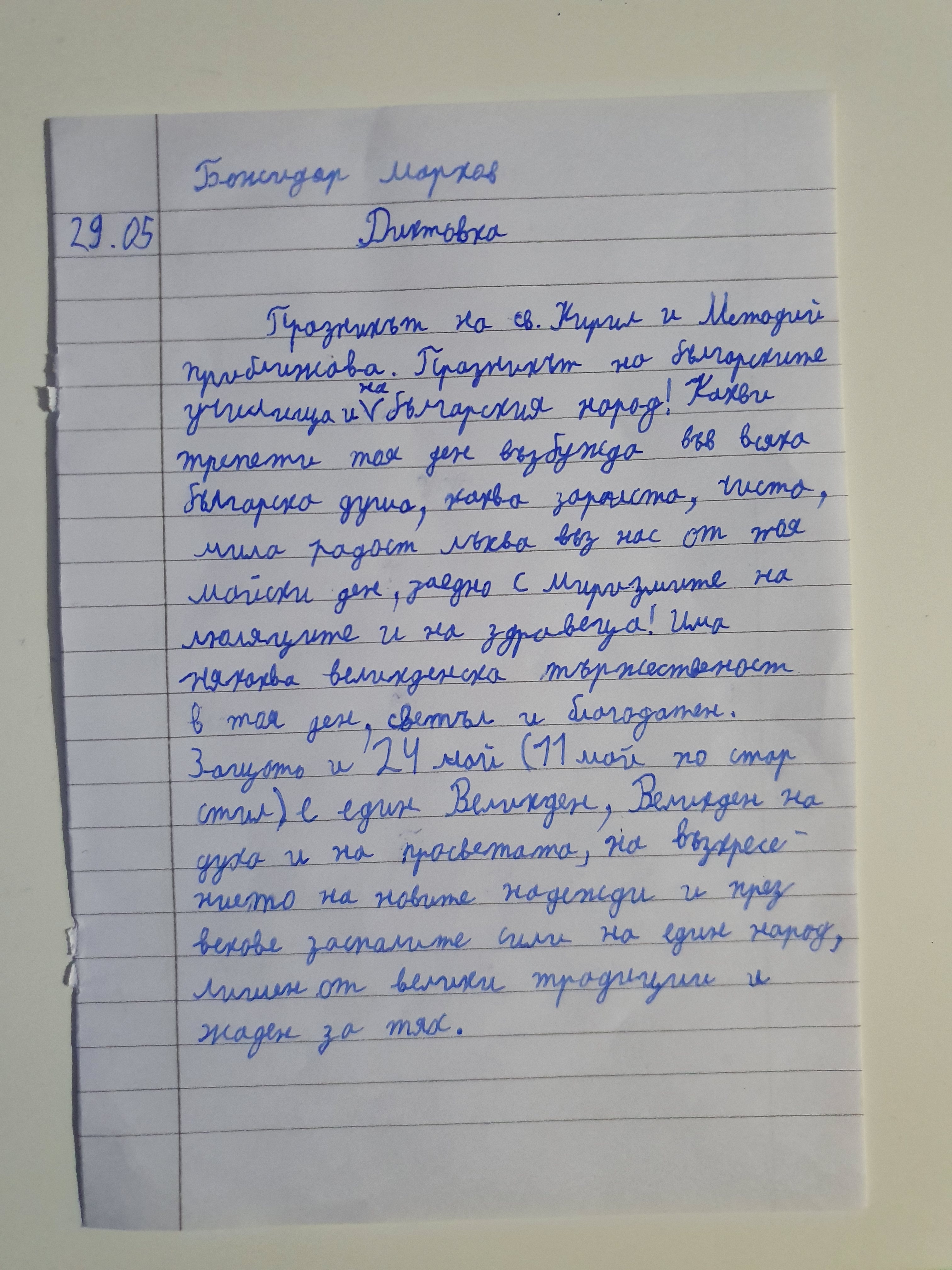 Диктовка по случай 24 май – Деня на българската просвета и култура и на славянската писменост, направи и Тиана Иванова Токова от 2. клас на Средно училище „Йордан Йовков в град Тутракан.