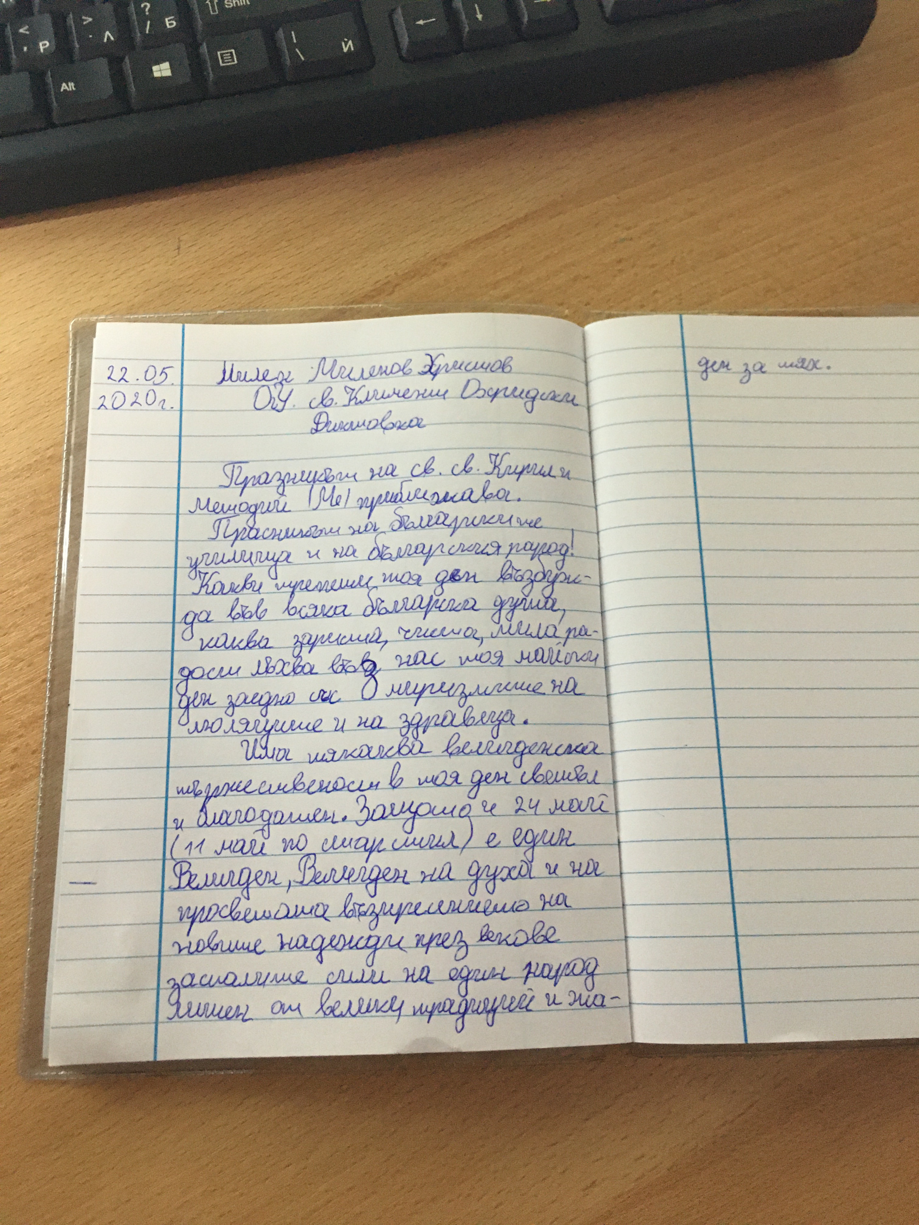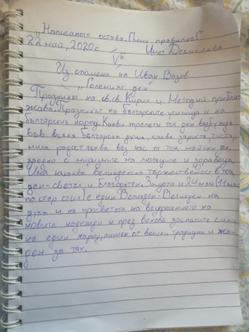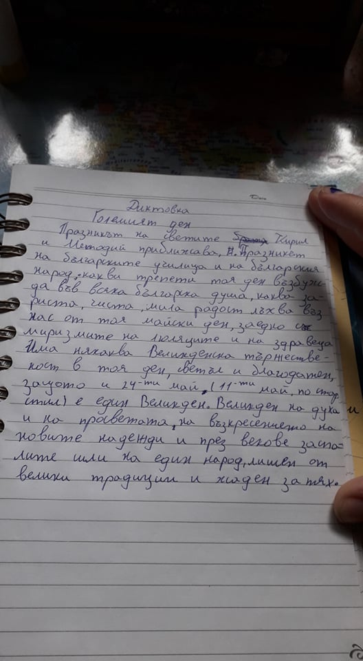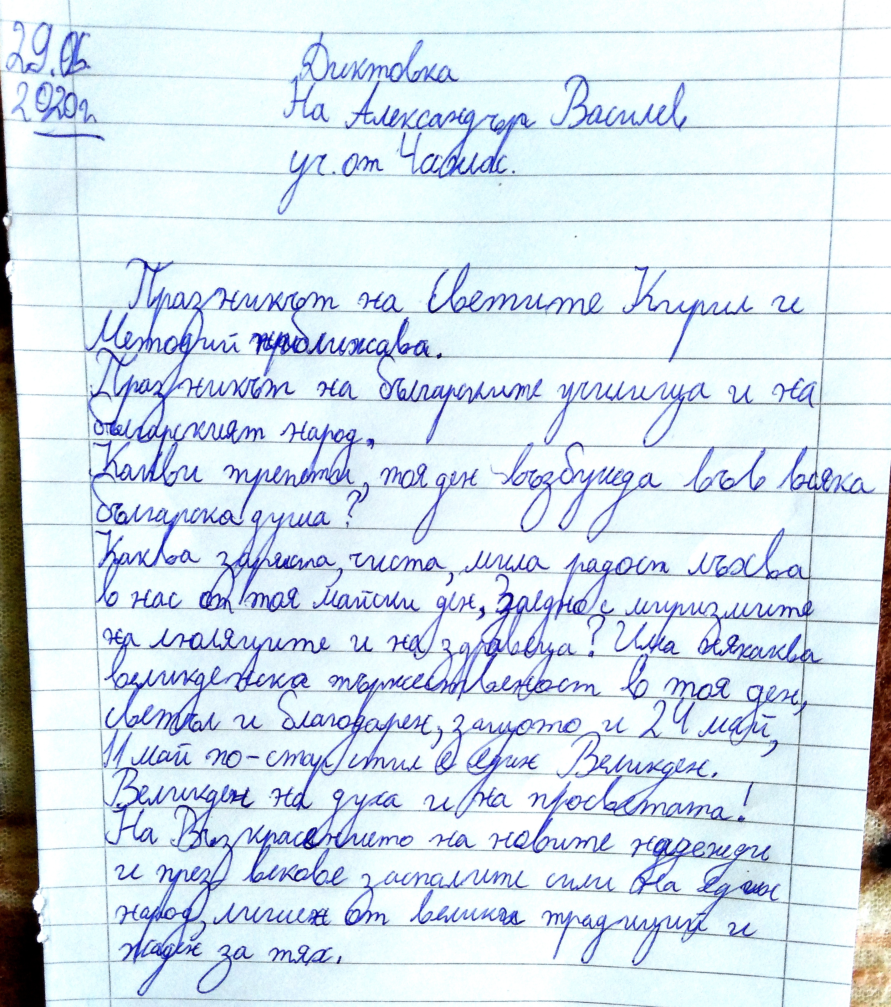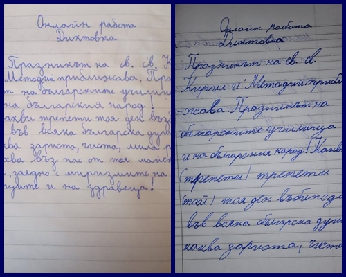 Ученици от 8. клас на Средно училище „Васил Левски“ в град Опака също направиха диктовка във виртуалната си класна стая по случай 24 май – Деня на българската просвета и на славянската писменост. Две ученички се справиха отлично с предизвикателството.