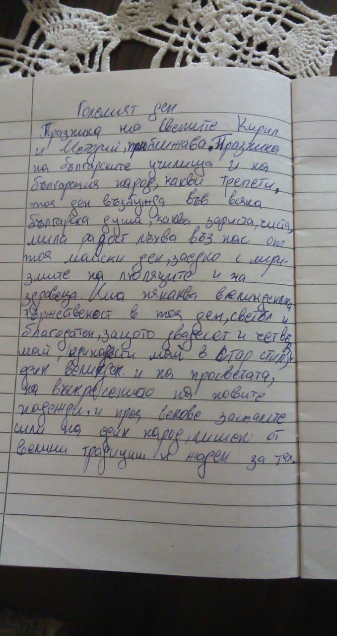 Малките ученици от 1. и 2. клас на Основно училище „Пейо Яворов“, с. Гьоврен, общ. Девин, обл. Смолян, показаха колко са упорити и трудолюбиви, защото успяха да запишат дългата диктовка в чест на 24 май – Деня на българската просвета и култура и на славянската писменост.
