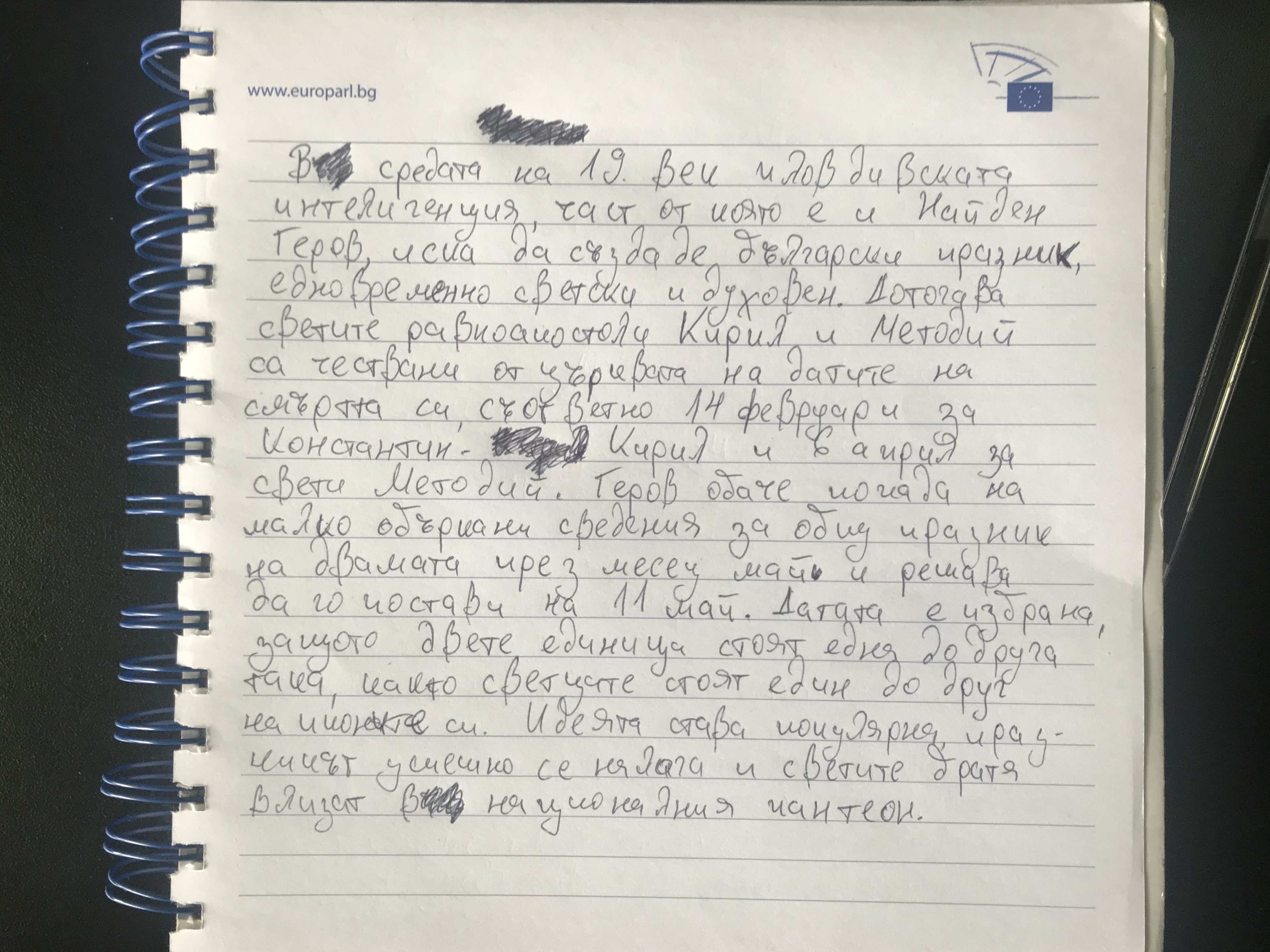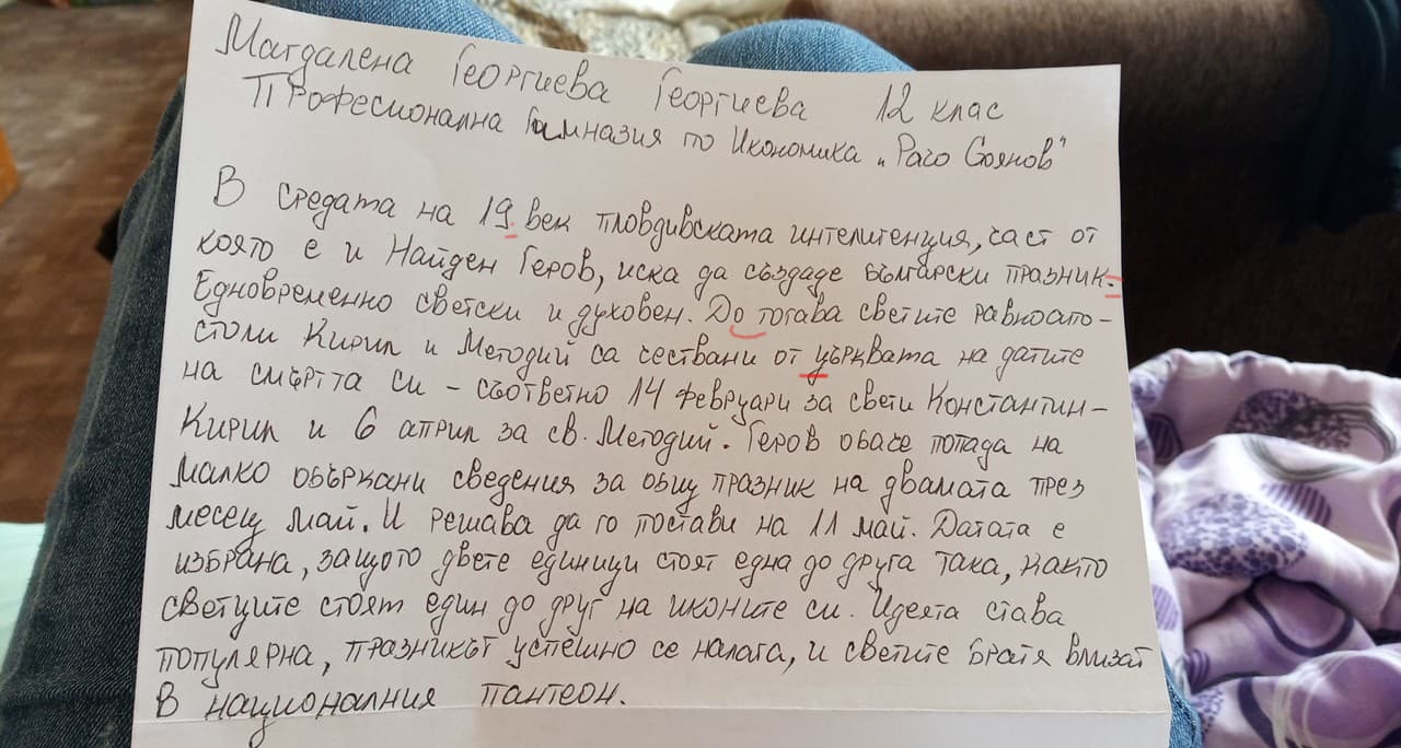 Ученици от шести клас при Основно училище „Евлоги Георгиев“ – гр. Дупница, се присъединиха с ентусиазъм към инициативата „Написаното остава. Пиши правилно!“ с диктовка във виртуалната класна стая, за да почетат делото на светите братя Кирил и Методий.