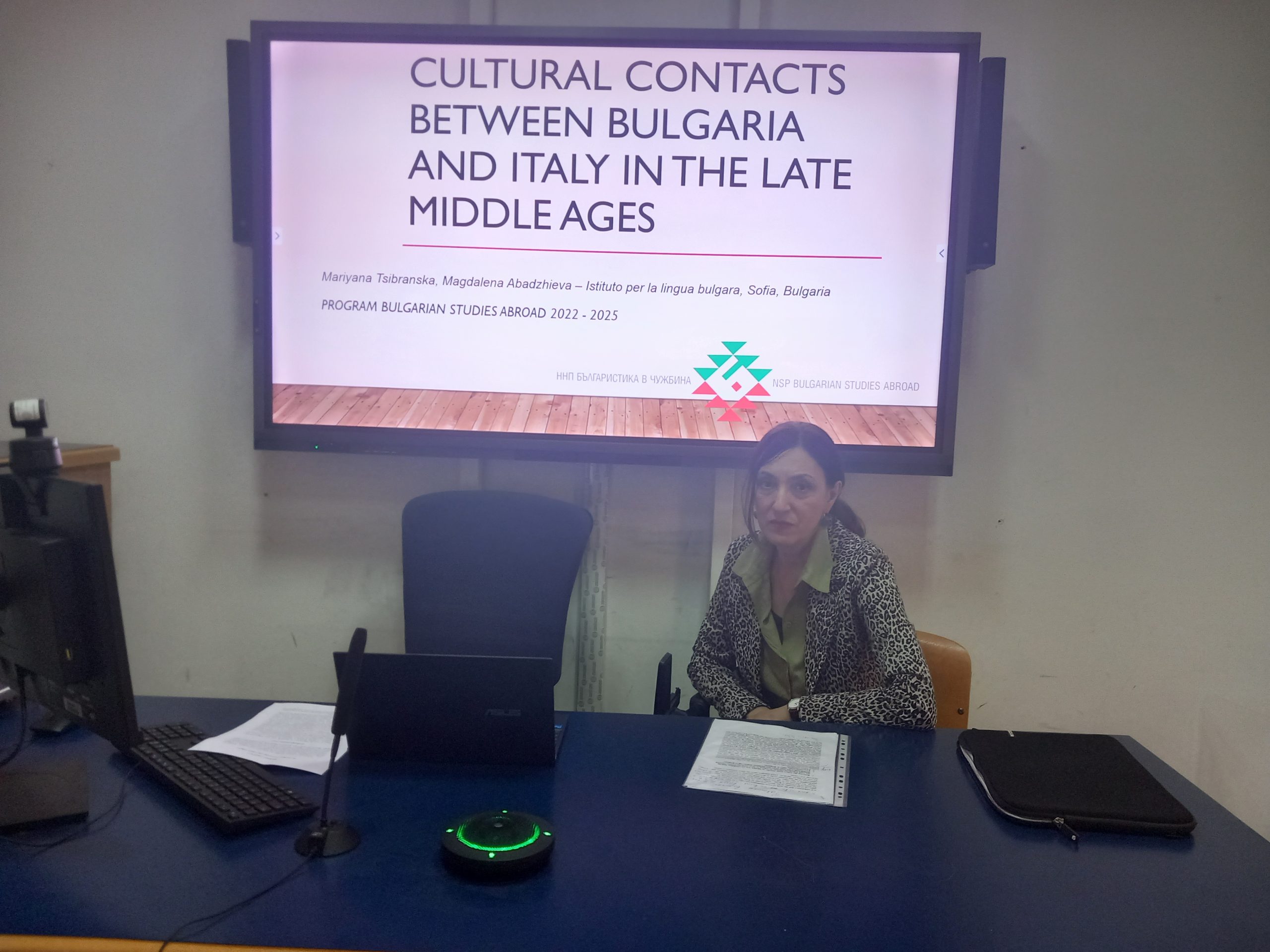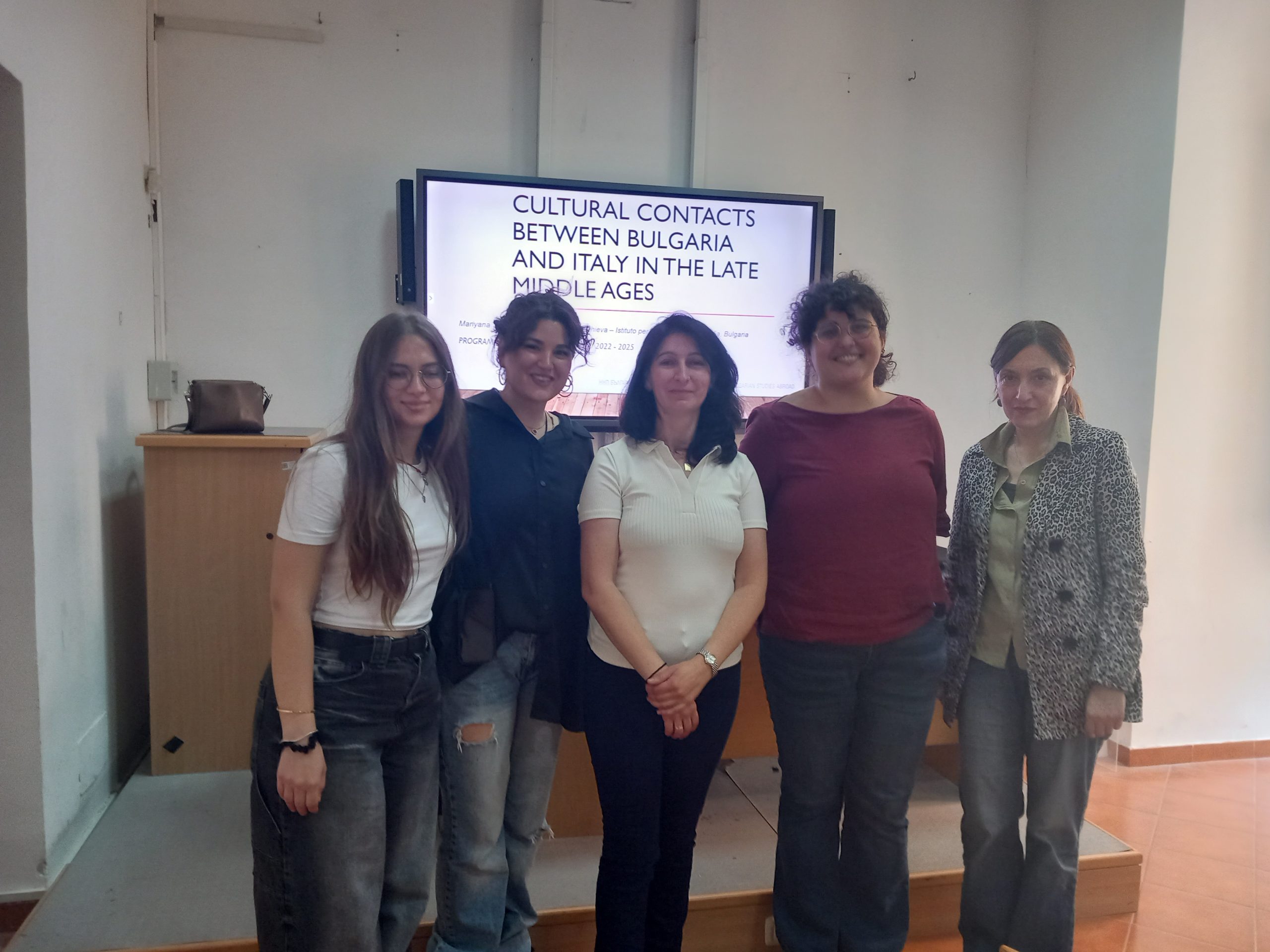 На 21 май 2024 г. проф. Марияна Цибранска-Костова и гл. ас. д-р Магдалена Стефанова Абаджиева изнесоха лекцията Cultural contacts between Bulgaria and Italy in the Late Middle Ages в магистърската програма в Департамента за литературни, езикови и компаративистични изследвания на Университета „Ориентале“ в Неапол. Тя бе осъществена по Националната научна програма „Развитие и утвърждаване на българистиката в чужбина“ и имаше за цел да представи историко-културните връзки между двете страни през XVI – XVIII в. в две основни области: ролята на Венеция за развитието на книгопечатането с кирилски шрифт и влиянието на италианския език и култура върху книжнината на българите католици. Лекцията бе осъществена с любезното съдействие на проф. Татяна Лекова и д-р Мая Падешка.