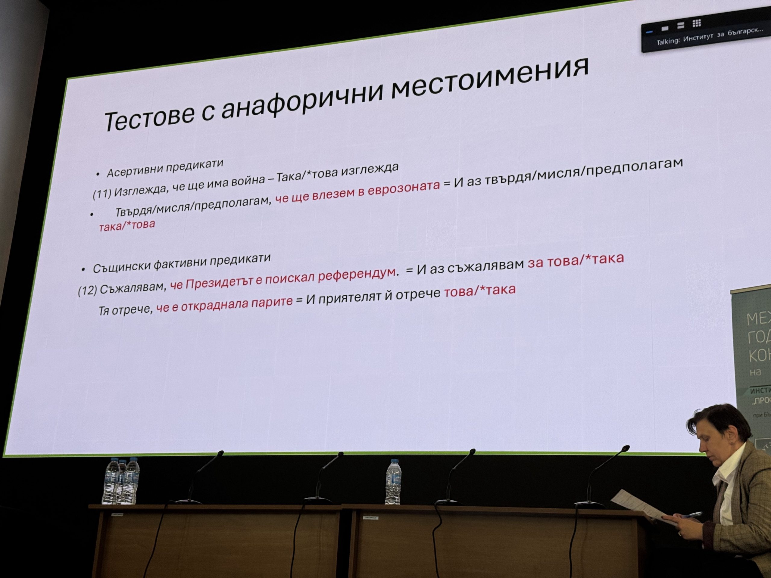 Откриване на конференцията от директора на Института за български език при Българската академия на науките и връчване на наградите на Института за български език