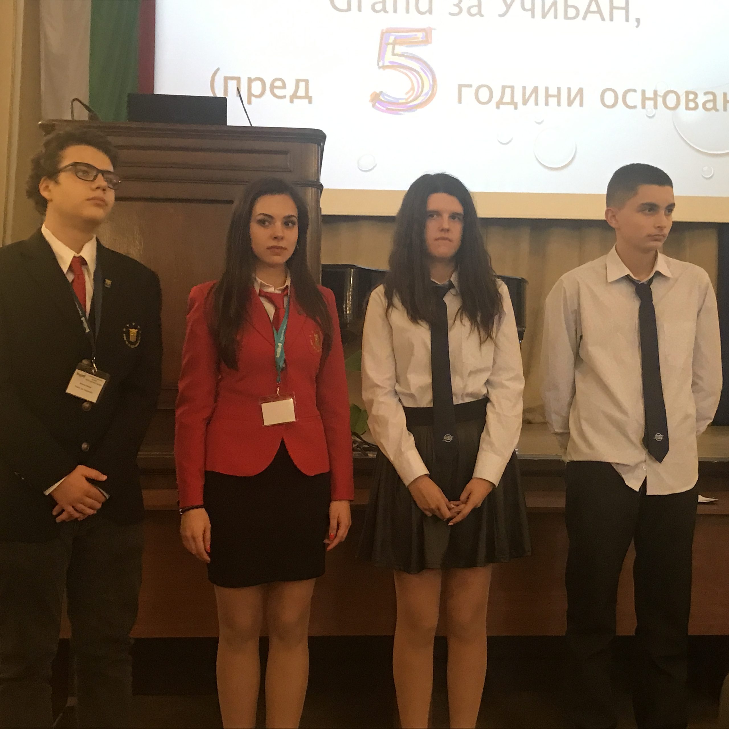 Бяха присъдени четири награди в областта на българистиката на петата научна сесия на Ученическия институт на Българската академия на науките (УчИ – БАН), която се състоя на 16 и 17 ноември 2018 г. На сесията бяха представени 48 проекта в различни научни области, разработени от ученици от 6. до 12. клас.
