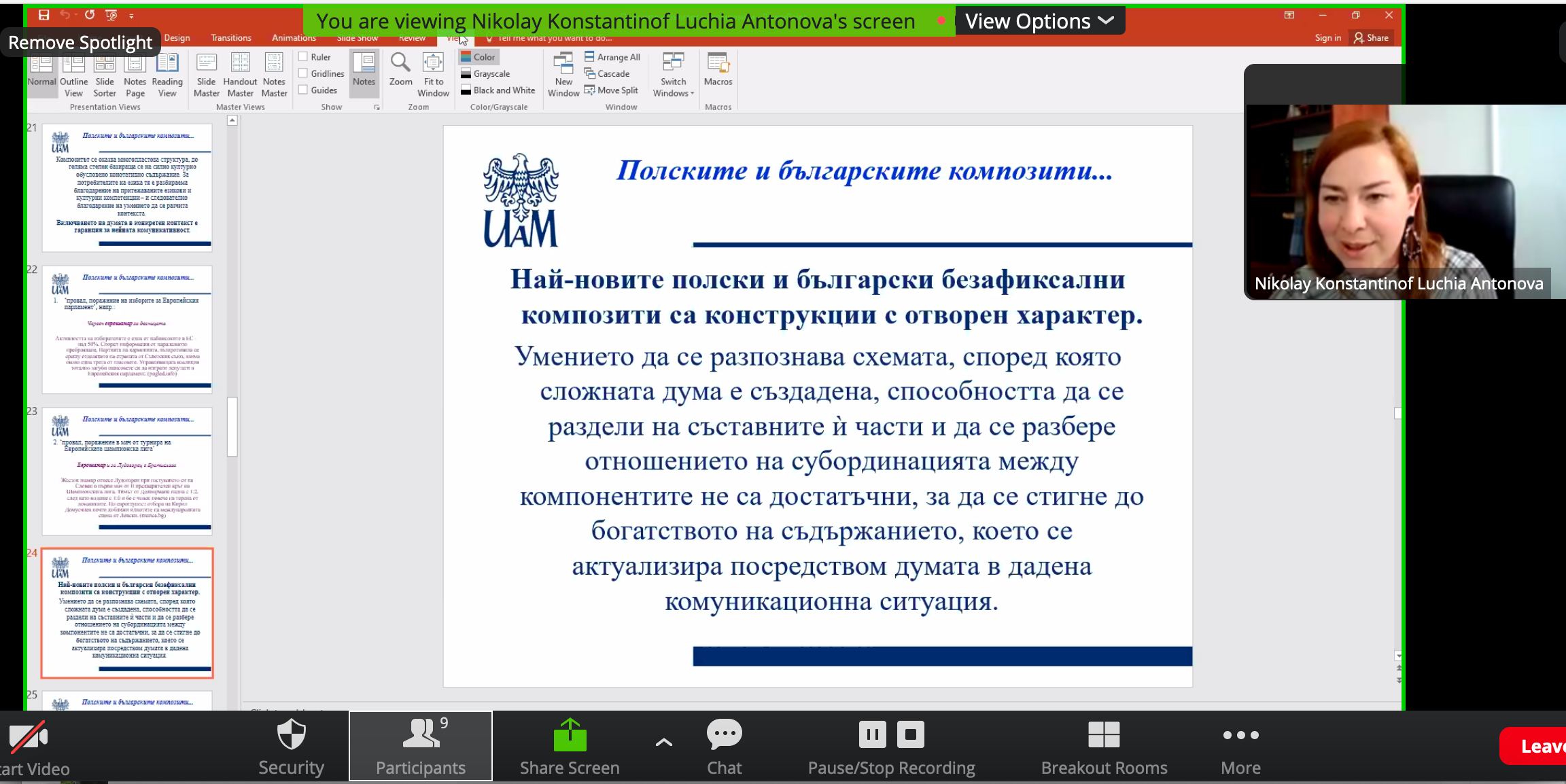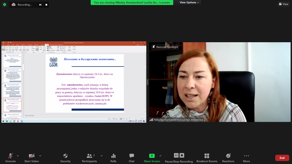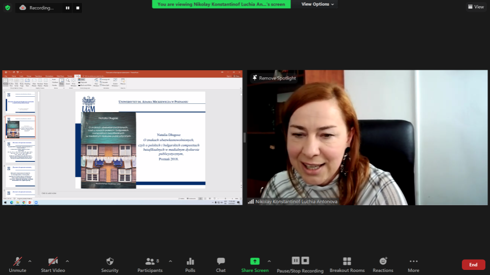Наталия Длугош от Университета „Адам Мицкевич“ в Познан, Полша, която е гост на Института за български език по програма „Еразъм“, ще изнесе лекция на тема „Полските и българските безафиксални композити в медиен публицистичен дискурс (когнитивно-комуникативен подход)“.