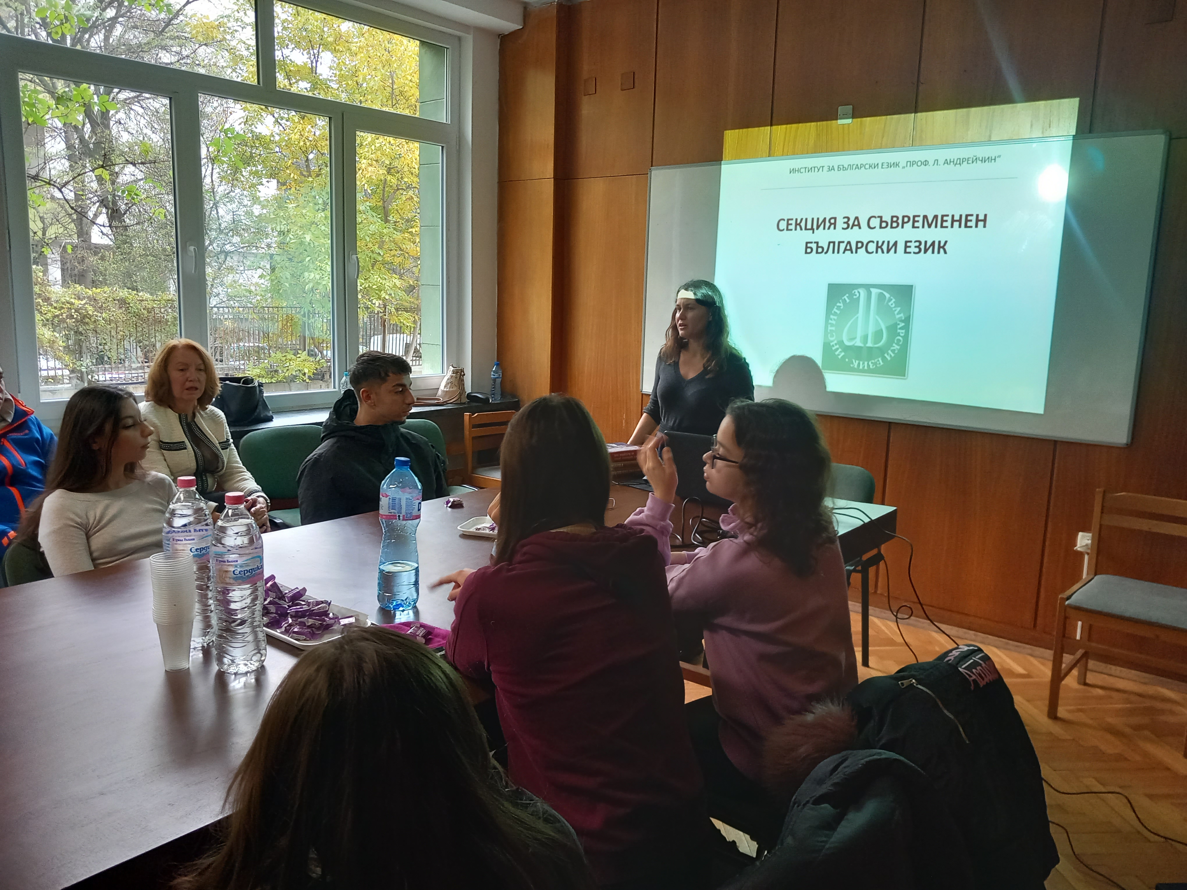 Лектори бяха гл. ас. д-р Жанета Златева от Секцията за съвременен български език и гл. ас. д-р Магдалена Абаджиева от Секцията за история на българския език. Учениците имаха възможността да разговарят и с проф. Лучия Антонова – директор на Института за български език, както и с доц. Татяна Александрова – ръководител на Секцията за съвременен български език.