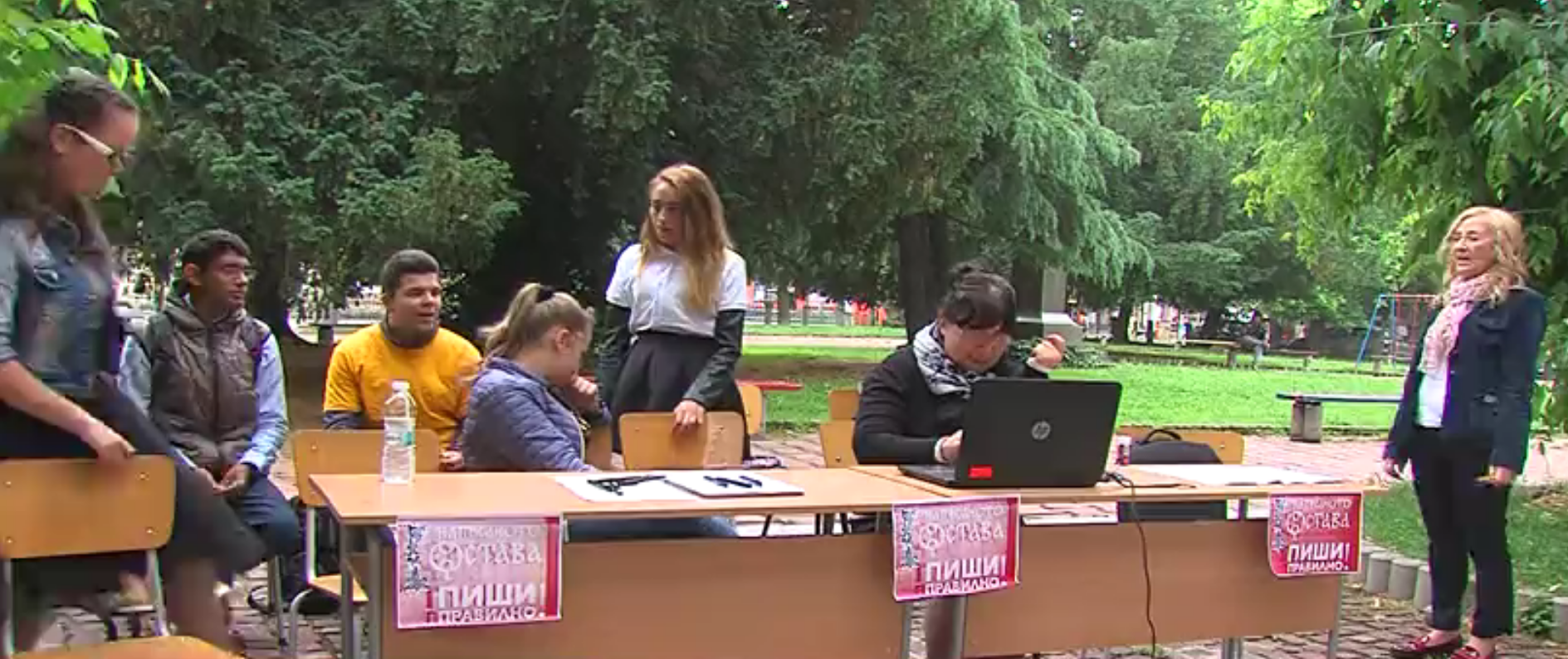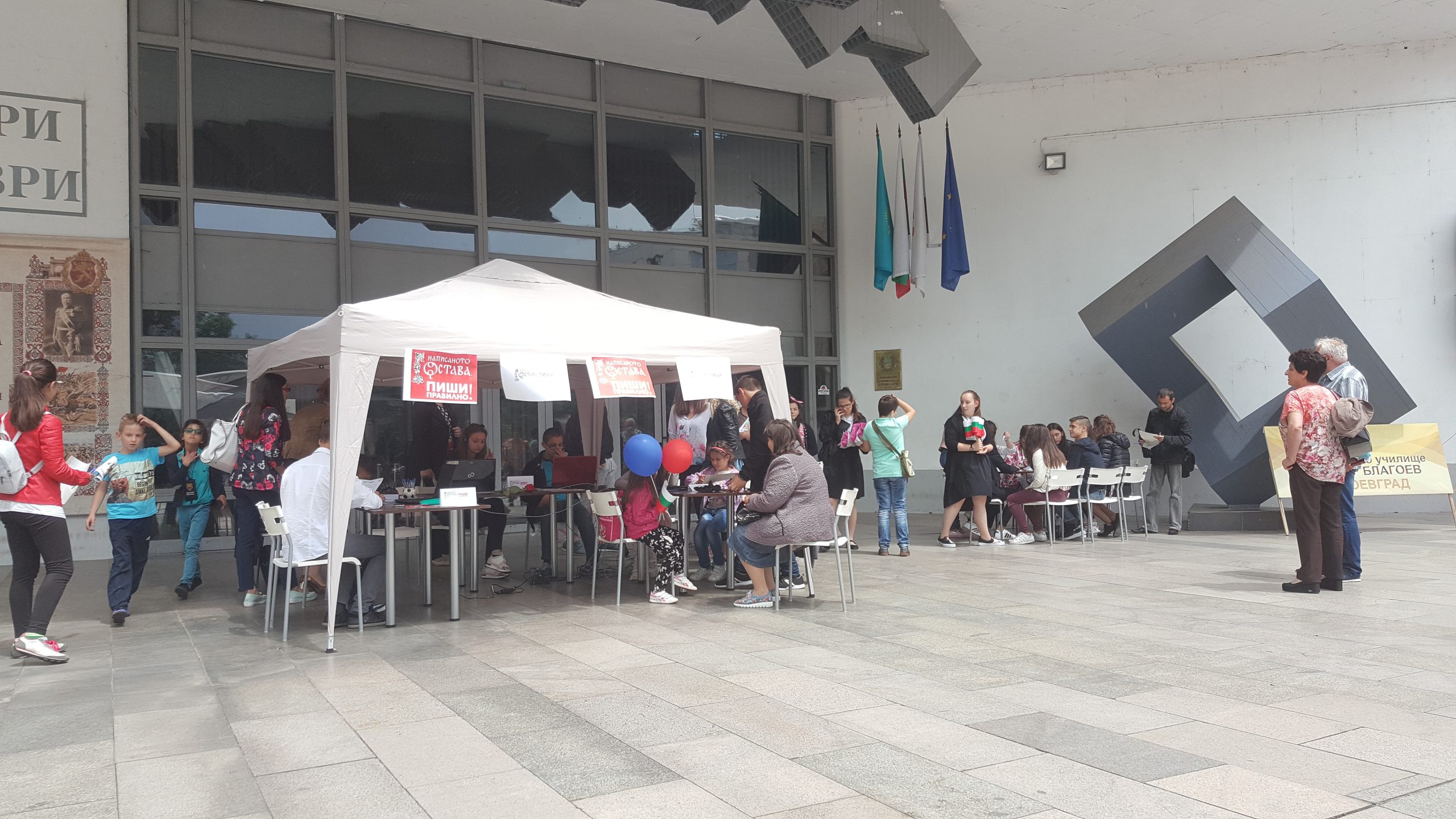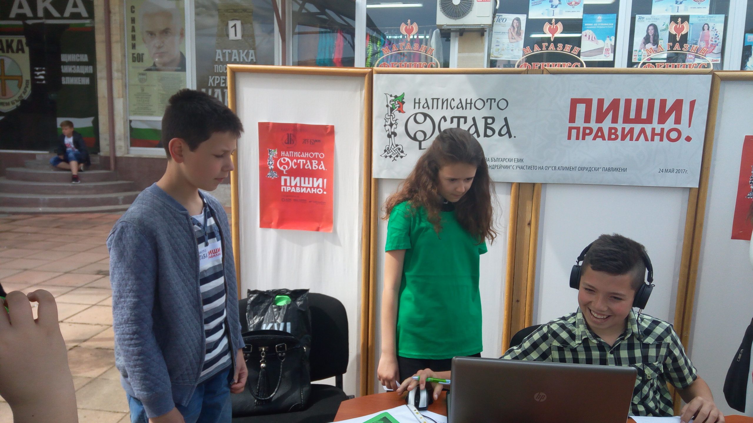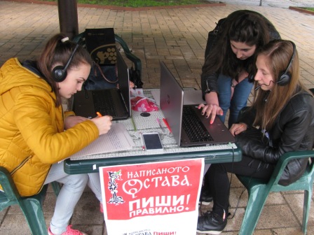 In 2017 the campaign “The Written Word Remains. Write Correctly!” of the Institute for Bulgarian Language at the Bulgarian Academy of Sciences covered many towns and villages in Bulgaria. From 17th to 26th May the teachers of Bulgarian language from Second Primary School “Dimitar Blagoev” in Blagoevgrad, Primary School “St. St. Cyril and Methodius” in the village of Dubovo, Primary School “St. Kliment Ohridski” in the town of Pavlikeni, Primary School “Hristo Botev” in the village of Banitsa, Professional High School of Tourism in the town of Samokov, Prof. Ivan Sergejevich Aksakov High School in Pazardzhik, High School “Vasil Levski” in Galabovo, High School “Konstantin Konstantinov” in Sliven and High School “Hristo Yasenov” in Etropole took the initiative and held short dictations either in the classrooms with the pupils or in the open with the citizens. The texts of the dictations and the materials were provided by the Institute for Bulgarian Language. In many places, municipalities supported the campaign by providing equipment for the dictations and gifts for participants, and regional media covered the events.