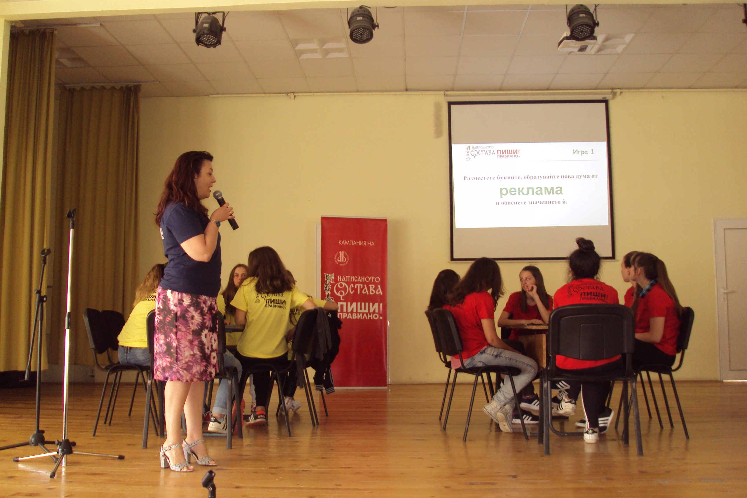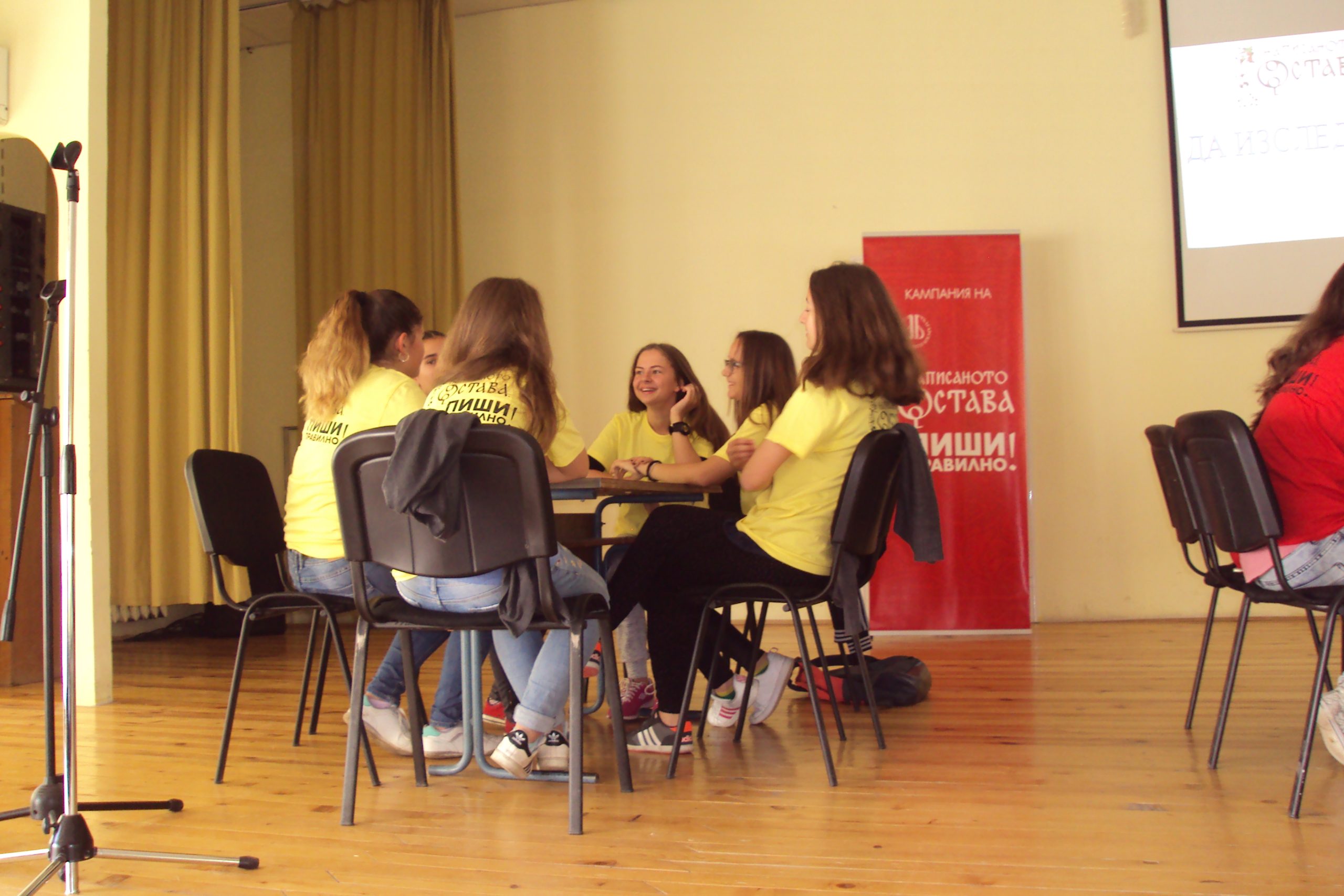 На 17.05.2018 г. езиковата викторина, провеждана от младите учени от Института за български език „Проф. Л. Андрейчин“ към Българската академия на науките в различни училища в страната, гостува по покана на учителите и учениците в 144. СУ „Народни будители“, гр. София. Вдъхновени и провокирани от видяното няколко дни по-рано по време на Деня на отворените врати на Института, седмокласниците показаха своите знания по български език. При това те демонстрираха не само познания в областта на изучавания в училище материал, но и широка обща лингвистична осведоменост. В помощ на седмокласниците в играта се включиха и техни съученици от десети клас, привлечени от интересните въпроси.