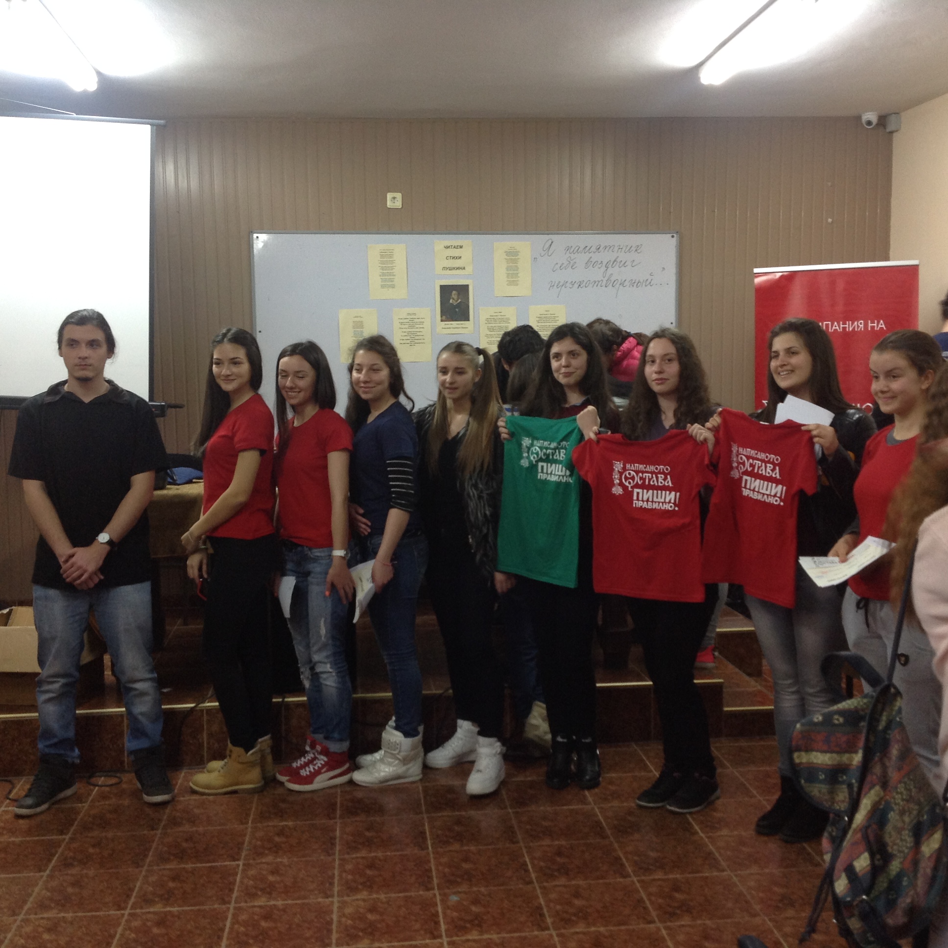 Целта беше да се съберат четири печата за четирите категории. Справилите се успешно участваха в томбола с награди от кампанията „Написаното остава. Пиши правилно!“. По време на заниманията ученици от Професионалната гимназия по икономика и мениджмънт представиха правила, свързани с правописа и пунктуацията на българския език.